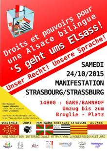 Finalment es realitzaran concentracions, més modestes, a Baiona, Estrasburg, Metz i a Aiacciu (Ajaccio). La basca sortirà a les cinc de la tarda convocada per Deiadar i Euskal Konfederazioa que ja van aplegar 6.000 persones el 2.012. A Alsàcia l'organitzen ICA i Culture et Bilinguisme Alsace. A la Lorena l'organització és a a càrrec de Gau un Griis, mentre a illa de Còrsega la concentració, com ja va passar el 2.014, la farà Parlemu Corsu demanant la "Cuuficialità" (Cooficialitat) com al País Basc Nord.